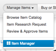 1. From any page inside the Swag Pro application simply hit the Manage Items drop-down and choose Item Manager.