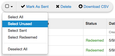 From here, you'll want to use the Download CSV option and get a CSV of all the new gifts you generated.