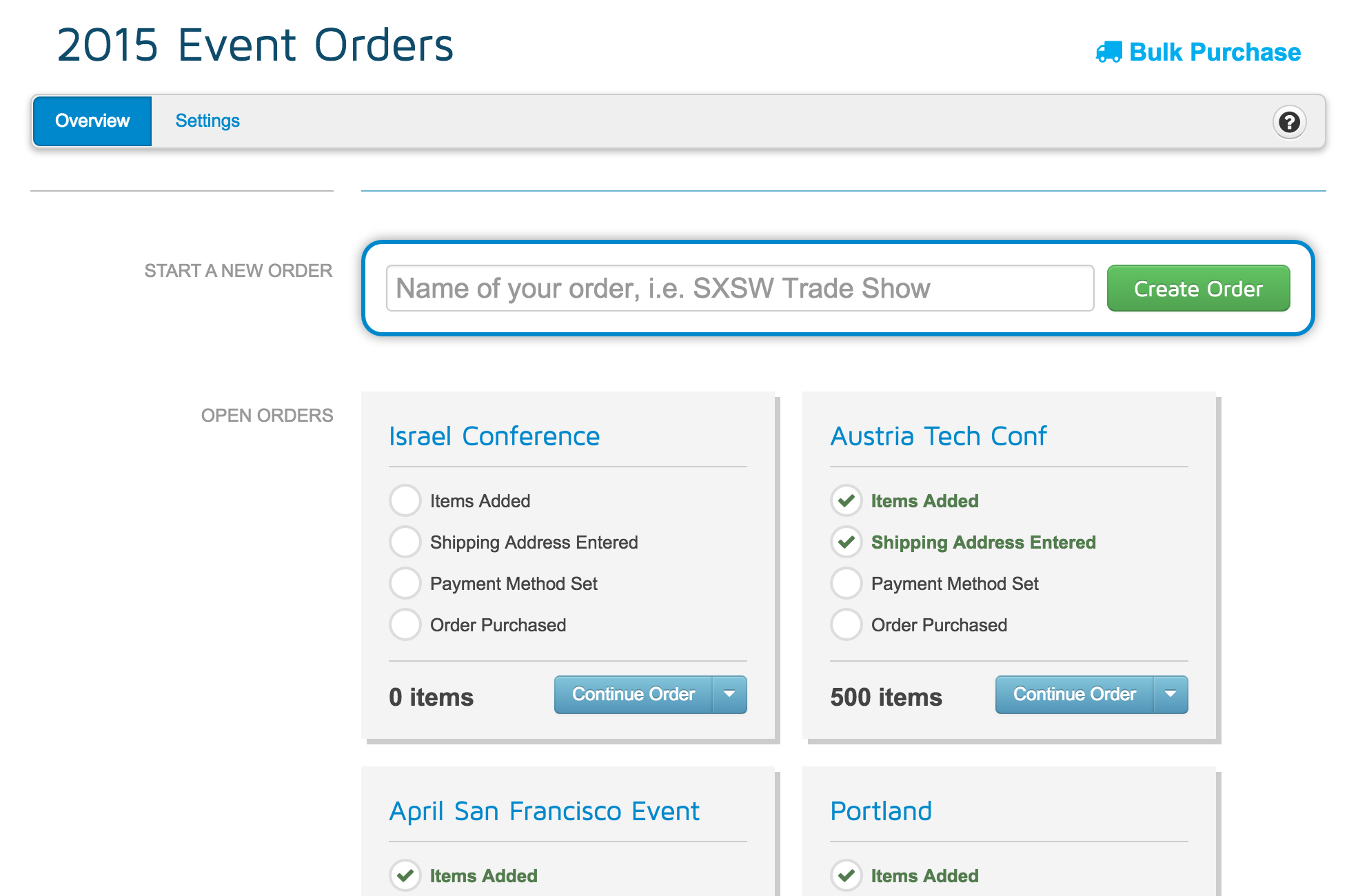 You'll now want to make a new drop shop campaign for each type of order you plan to place. In our example we would use two campaigns, one for Company Gifts and one for Event Orders.