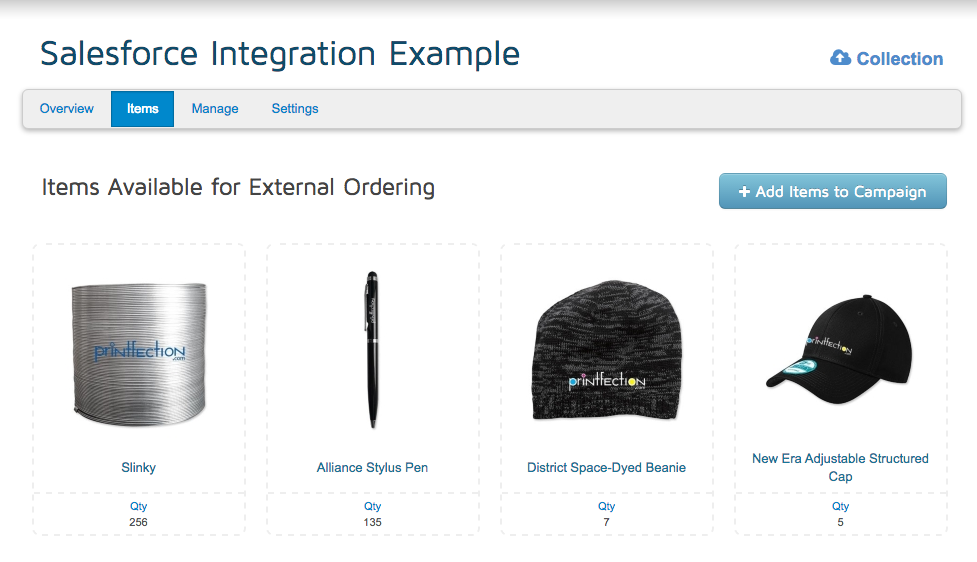 This article covers how to integrate your Printfection account with Salesforce: allowing sales reps to place their own swag orders which are then reviewed and approved by you through Printfection.
