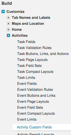 Under the Build > Customize menu on the left-hand side choose the object you want to apply this action button to, in this example we'll be using the Activities object.