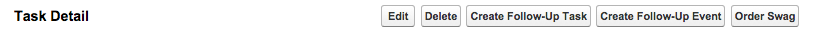 Now that you've added an action button to Tasks within your Activities object you'll see that Order Swag button available on a task.